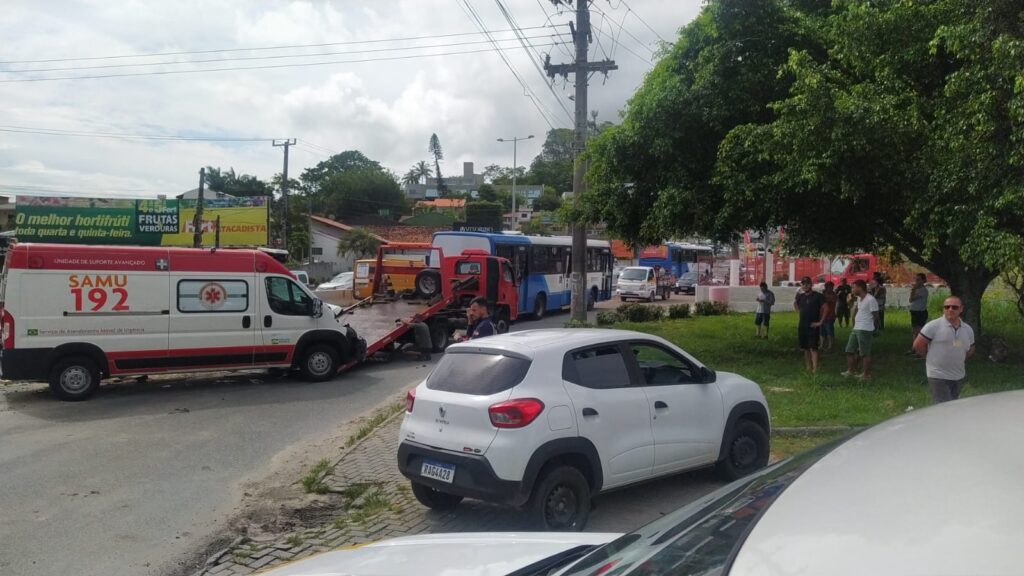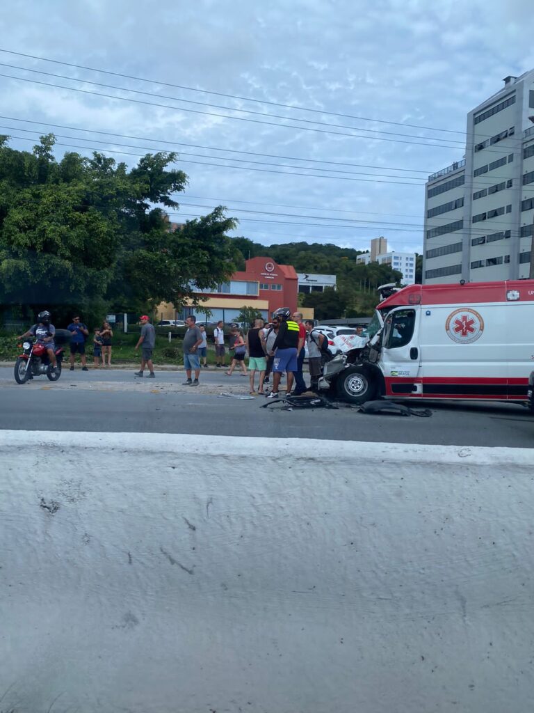 Uma ambulância do Serviço de Atendimento Móvel de Urgência (SAMU) colidiu com a traseira de um ônibus na tarde desta terça-feira, por volta das 14h, na SC-401, no bairro João Paulo, em Florianópolis. A equipe estava em deslocamento para uma ocorrência de parada cardiorrespiratória quando foi desviar de um veiculo e acabou colidindo na traseira do coletivo.