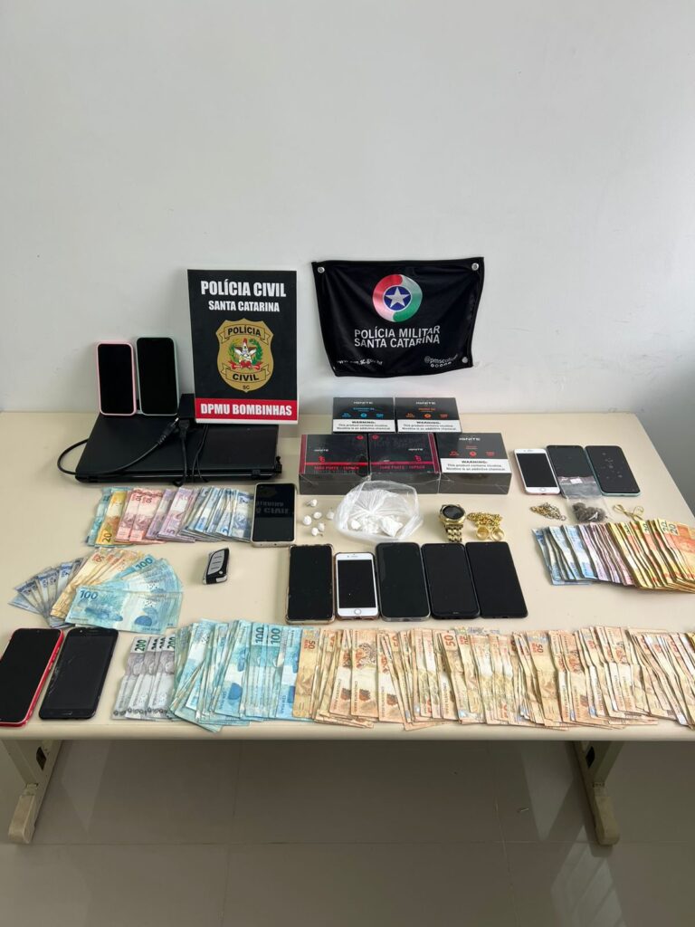 A investigação, realizada há mais de um ano pela Delegacia de Polícia de Bombinhas em conjunto com o 31º Batalhão de Polícia Militar, identificou uma organização criminosa, estruturalmente ordenada com divisão de tarefas, que se utilizava de Conveniências, nos bairros Bombas e José Amândio, para dissimular a prática de tráfico de drogas, receptação de bens furtados, contrabando e corrupção de menores.